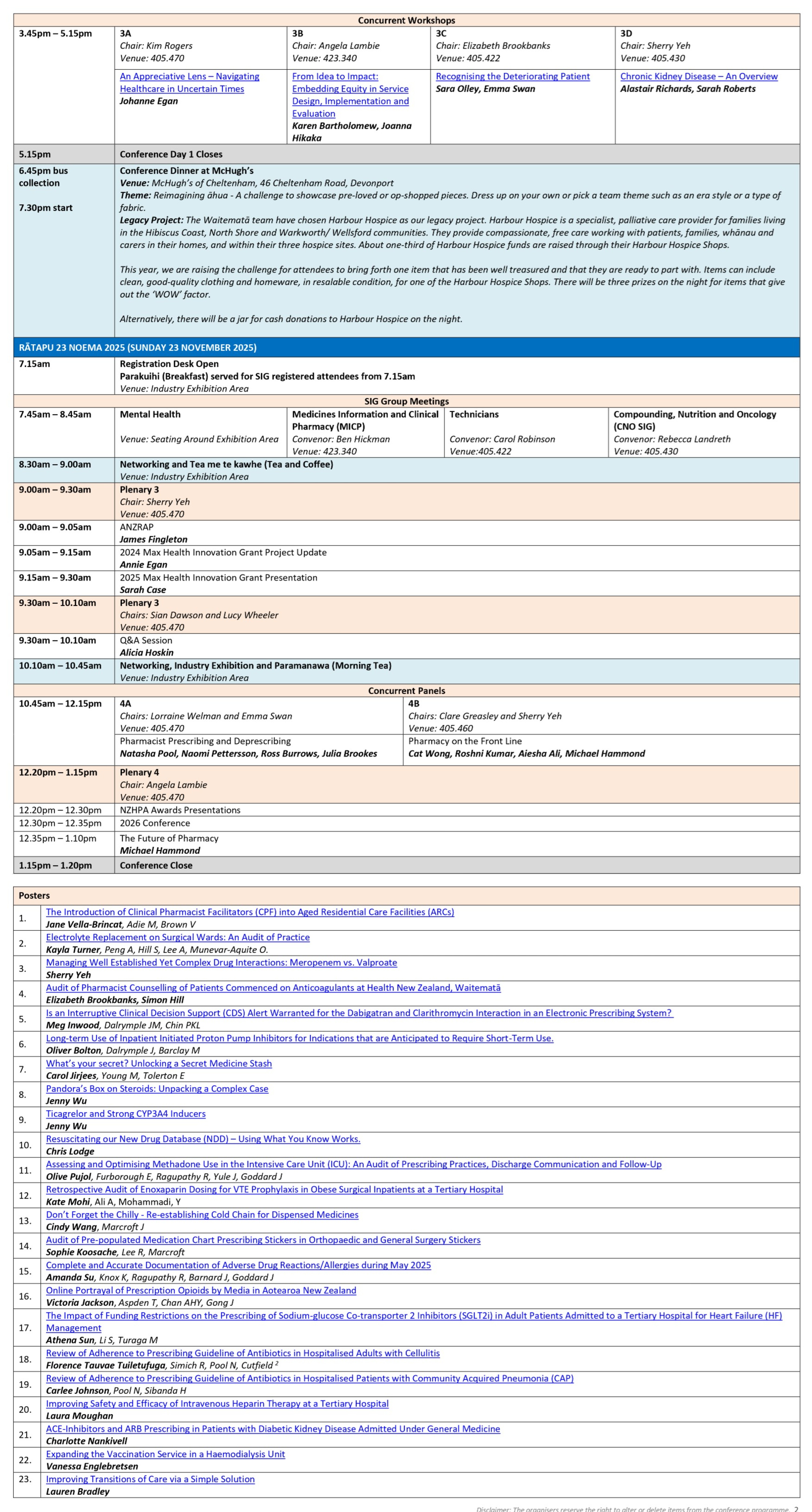 Disclaimer: The organisers reserve the right to alter or delete items from the conference programmes.