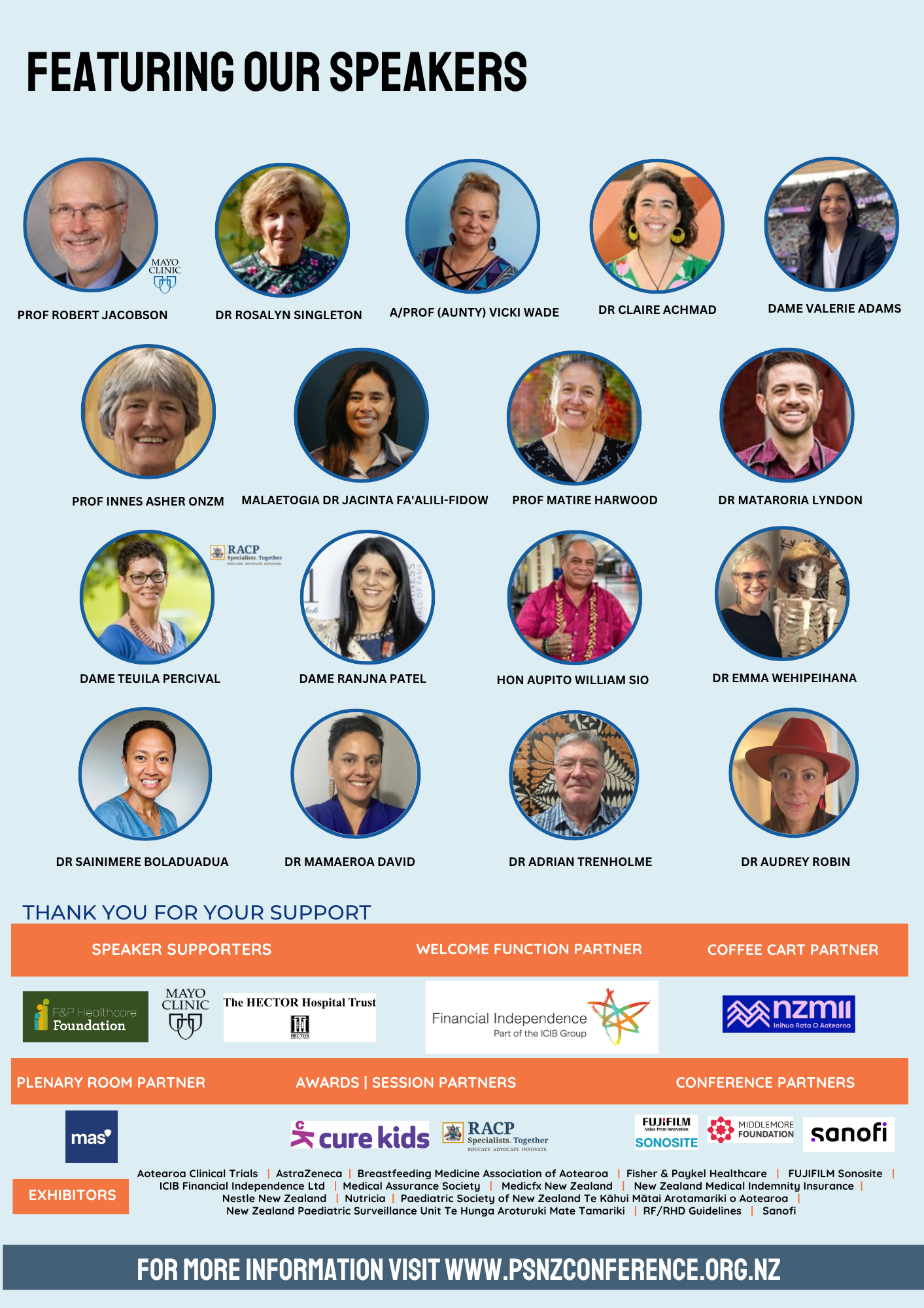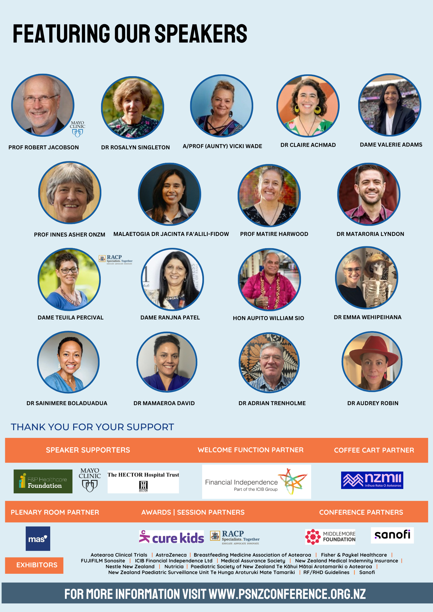 The RACP Montgomery Spencer Memorial Lecture will be delivered by Dame Teuila Percival, South Auckland Paediatrician and Pacific Child Health advocate. We are also delighted to confirm our Mayo Clinic international speaker, Dr Robert Jacobson, from Minnesota, who specialises in Adolescent Medicine, Epidemiology and vaccine preventable diseases (with a focus on RSV).
